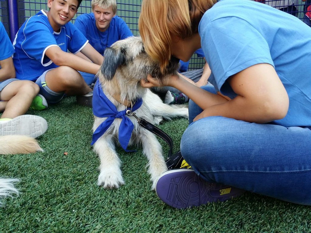 El proyecto «JUGANDO Y EDUCANDO» es un proyecto dirigido a niños y niñas de primaria con dificultades de aprendizaje y diferentes trastornos. A través del contacto y el juego con el perro, trabajamos la mejora de competencias transversales así como las relaciones entre iguales.